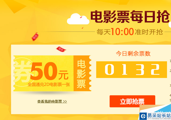 電影票每天10點可以領取,每個qq號只能領取1個。