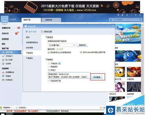 6、設(shè)置好相應(yīng)的上傳及下載速度后,點(diǎn)擊確認(rèn),關(guān)閉設(shè)置窗,完成整個配置,在點(diǎn)擊邊下邊播,基本上是400kb/s,看1.4G以內(nèi)的視頻不卡頓。下載時長低于電影總共時長就不卡頓。