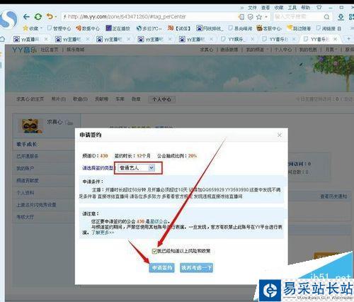 3、點擊個人中心(最好刷新下網頁剛點完可能有沒反應過來)申請簽約 輸入430,點我已知道以上風險(打鉤),確認簽約。