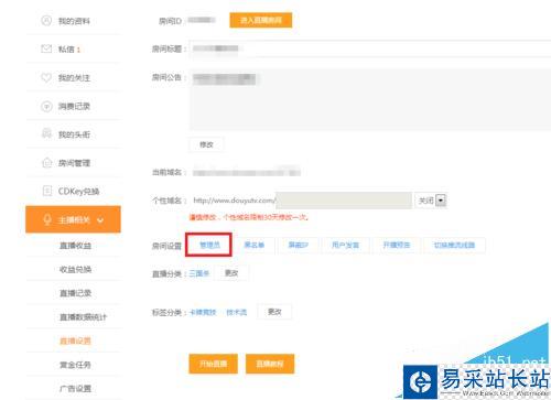 3、進(jìn)入個(gè)人中心后,在左邊的一欄中選擇主播相關(guān)。