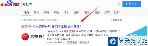 1、首先,我們?cè)陔娔X中使用百度網(wǎng)頁(yè)搜索荔枝fm,然后點(diǎn)擊如圖所示選項(xiàng)打開(kāi)荔枝fm官網(wǎng)