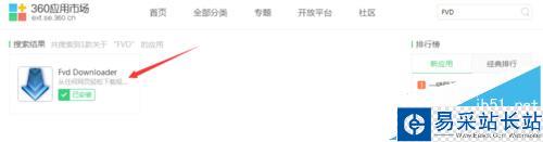 4、然后我們就需要用到一款插件了——Fvd Downloader,這款插件很多瀏覽器都支持,比如搜狗瀏覽器和360瀏覽器,我們?cè)?60瀏覽器的應(yīng)用中心搜索該插件,然后點(diǎn)擊安裝到瀏覽器上
