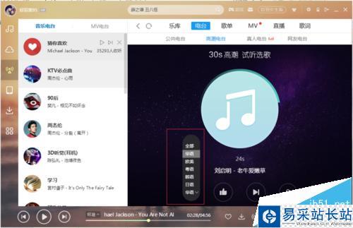 4、我們可以在如圖所示位置選擇歌曲的語種, 當然如果選擇全部所有的語種歌曲都會推薦了