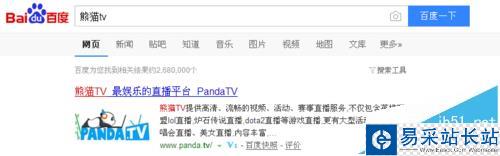 1、進入到電腦后,我們再打開瀏覽器,然后搜索查找熊貓TV,找到進入網址后,點擊下方的地址進入到熊貓TV首頁面。