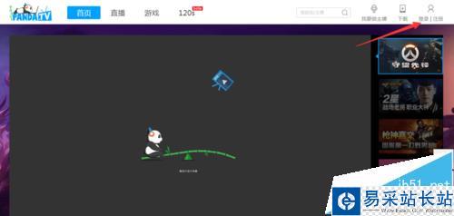 2、然后在我們進入到這個熊貓TV主頁后,在頁面的右上角找到“登陸”,當然前提是我們之前有注冊過,登陸自己的帳戶。