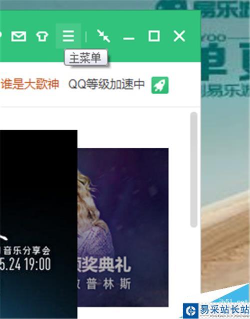 2、打開自己的QQ音樂播放器,在最右上角的位置,找到主菜單。