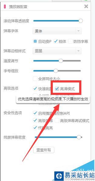 5、勾選高清模式,以后每次看視頻會優先加載清晰度高的視頻。