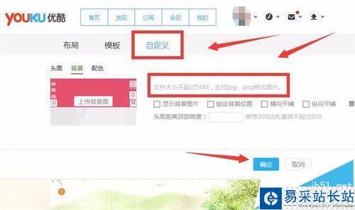 7、還有一些朋友覺得模板不好看,這里我們選擇自定義,可以自己上傳喜歡的圖片作為背景哦,記得圖片有限制大小哦、