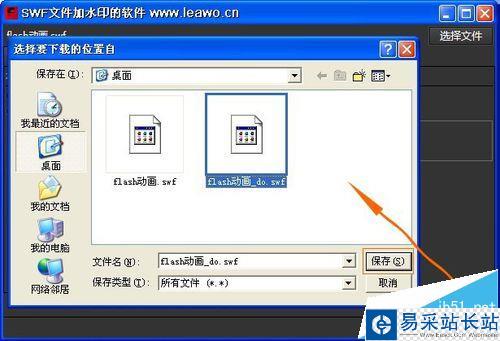 4、然后點(diǎn)擊右下方的“開始處理”按鈕,彈出窗口中設(shè)置一下新swf文件的輸出路徑、文件名,“保存”,即可搞定。我這里保存在電腦桌面上了。
