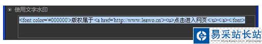3、然后選擇“水印”選項(xiàng),點(diǎn)選“水印位置”,位置有右上角、右下角、左上角、左下角、舞臺(tái)中央,例如這里我先了舞臺(tái)中央。再勾選“使用文字水印”或“使用圖片水印”,這里以“使用文字水印”為例吧,如下圖,在對(duì)應(yīng)輸入框中,有一些代碼,color='#000000'指文字顏色為黑色(#ffffff為白色、#ff0000為紅色等,你可以上網(wǎng)百度下),在“這里輸入文字水印”的地方輸入你要的文字就好了。