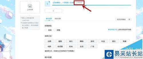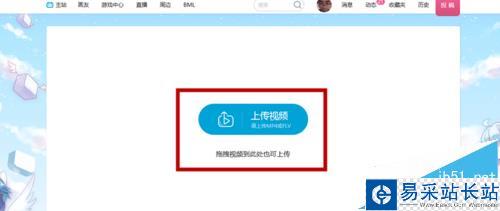 3、登錄后點擊右上角“投稿”按鈕,在投稿界面選擇“上傳視頻”按鈕。