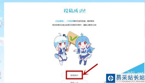 6、稿件提交成功后會有“投稿成功”的提示界面,你可以選擇“查看稿件”選項查看已提交視頻。
