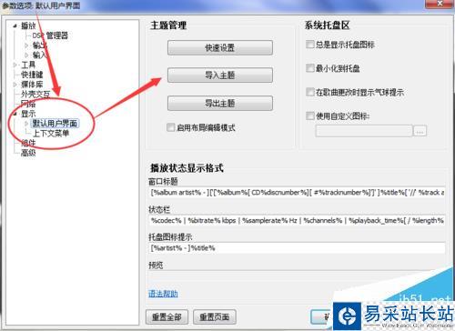 2、點開顯示---默認用戶界面,進行設置導入下載好的皮膚主題