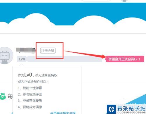 注冊登錄好后,如果你是剛注冊的新號,此時的帳號還是LV0級別,不享受發射個性彈幕,視頻評論等特權,需要答題轉為正式會員,也就是LV1級會員。也可以通過輸入朋友推薦碼直接轉正。