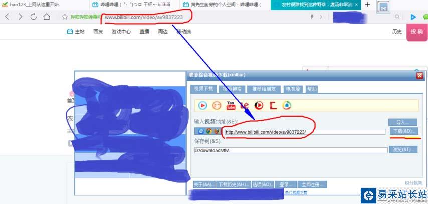 2、這個使用也超簡單有沒有,只要把視頻的網頁地址復制到……(額那叫啥我也不懂,你們看圖把),然后在設置一個視頻保存的地址,最后點擊下載就行了