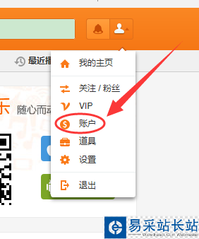 3、點擊賬戶標志,在彈出的二級菜單中,選擇賬戶。