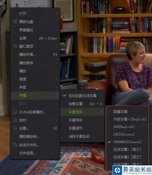 2、對于有內嵌字幕的視頻,我們就可以進行字幕切換了,選擇一個我們合適的字幕即可