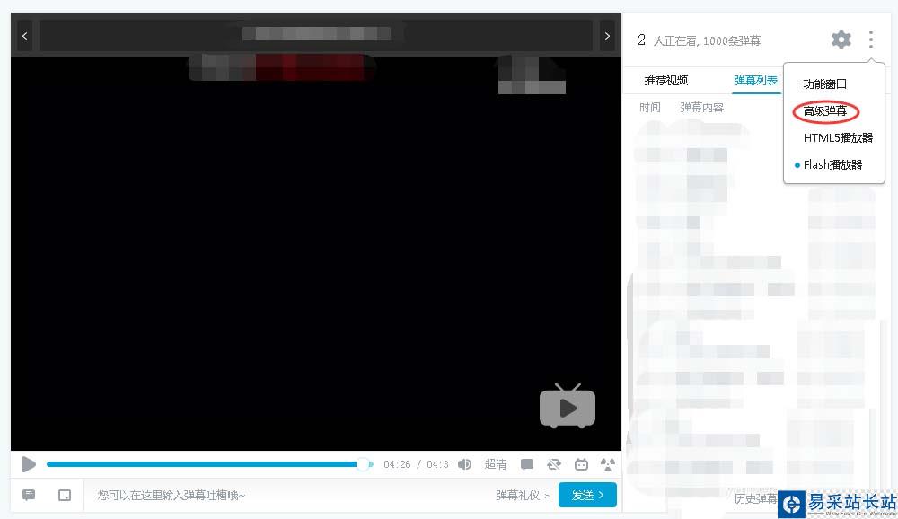 4、選擇“高級彈幕”。
