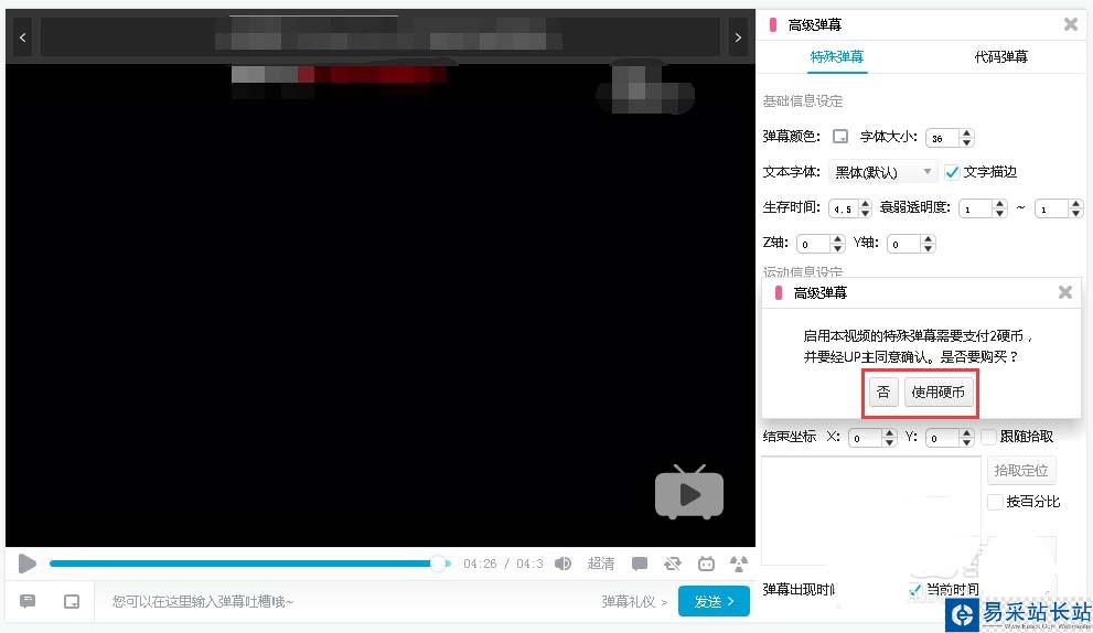 5、發(fā)高級彈幕必須要先送兩硬幣,送后還需要通過up主同意。