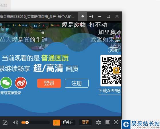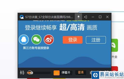 4、視頻質量提高需要登錄:小窗口已經可以了,我們可以在右下角切換視頻的質量,不過是需要先進行登錄的操作的。