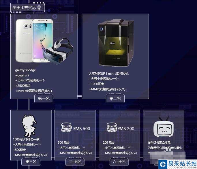 b站會定期組織一些比賽,比較規律的有一年一度的MMD視頻大賽等。up主投稿參與比賽,獲得參與獎及以上獎勵。獎勵中包括實物獎勵和虛擬物品獎勵,也有現金獎勵。