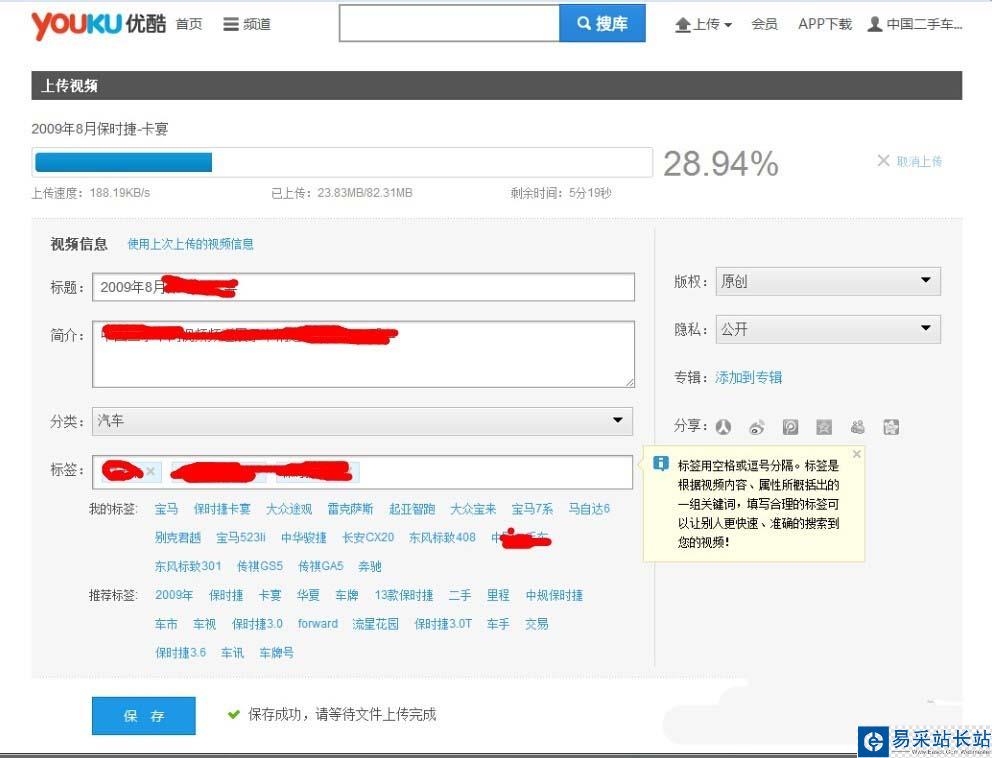 3、上傳的時候,我們的視頻說明的文字,不要和之前的一樣