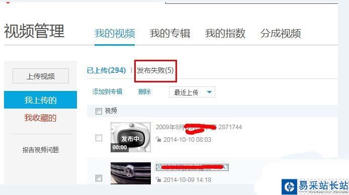 5、對于那些發布失敗的視頻,我們可以在“發布失敗”的項目里面找到列表。