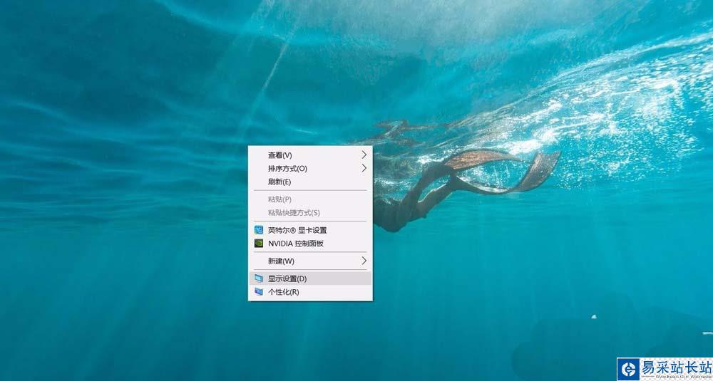 2、在我們的電腦上右鍵點(diǎn)擊一下,然后選擇“顯示設(shè)置”進(jìn)入到我們的設(shè)計(jì)界面。