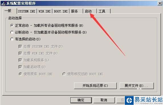 5、在打開的系統配置實用程序窗口中,點擊上面的“啟動”標簽