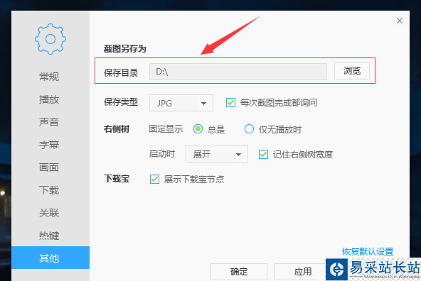 6、這樣截圖另存為保存目錄的修改完成了,設(shè)置完成之后,進行點擊確定即可。