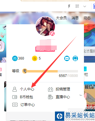 1、首先在電腦端登錄你的B站賬號,將鼠標(biāo)光標(biāo)移到頁面上端的你的頭像處