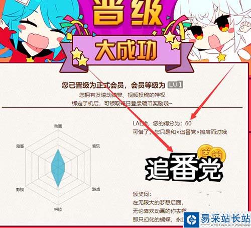 7、獲得免費掛件就是在你注冊B站賬號時,要答題夠60分才能從Lv0升至Lv1,即正式成為B站會員。假如你的分?jǐn)?shù)是85分以上,就會獲得免費答題掛件,沒有85分就沒有。