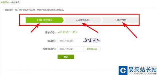 5、在更改手機(jī)驗(yàn)證頁(yè)面點(diǎn)擊發(fā)送驗(yàn)證碼,手機(jī)會(huì)收到驗(yàn)證碼,輸入驗(yàn)證碼解除原來(lái)的號(hào)碼,并直接進(jìn)入新號(hào)碼綁定,輸入新手機(jī)并驗(yàn)證成功,原來(lái)的手機(jī)就解綁完成了,如下圖: