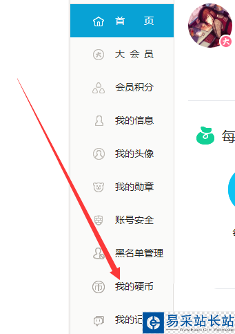 4、現在我們點擊頁面左邊的【我的硬幣】