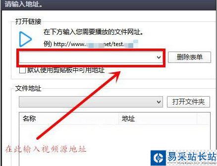4.在軟件彈出的打開鏈接的操作框中輸入視頻源的地址鏈接,輸完后鼠標左鍵單擊界面下方“確定”按鈕即可。