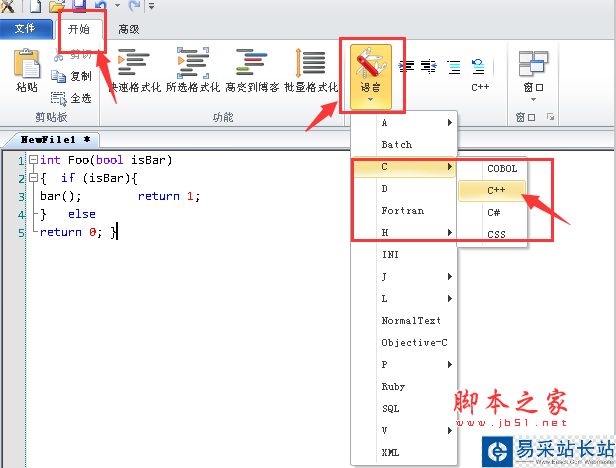 錯新站長站小編補充:如果是復制進去的代碼,需要先選擇代碼的語言分類