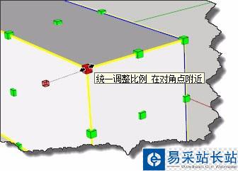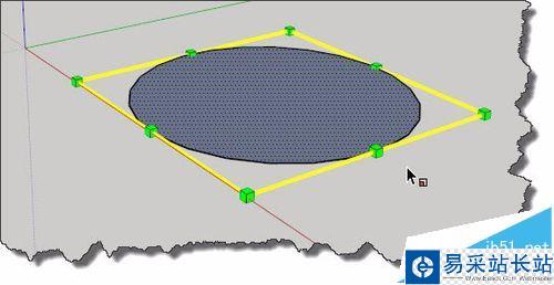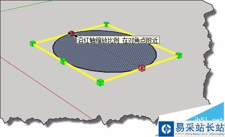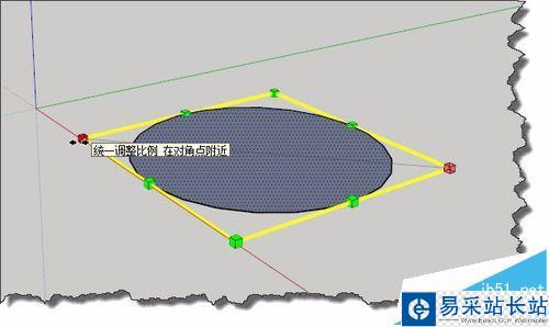 3、我們先對一個簡單的二維對象進行縮放,選擇“縮放”工具,點擊選擇對象后,你可以看到綠色的柵格。