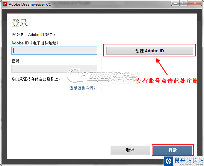 4、此步需要登錄剛才我們創(chuàng)建的Adobe ID,如果之前沒有創(chuàng)建ID的則可以在點擊登錄后的頁面中創(chuàng)建。