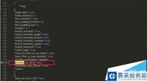 3、查找用戶自定義配置中的內容:“preview”,找到“preview_on_click”,并將其值改為:false