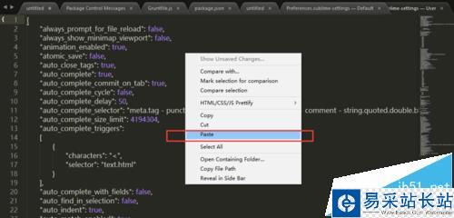 2、復制配置內容到用戶自定義配置,點擊菜單“Preferenc”->“Settings - User”, 將復制的內容黏貼至用戶自定義配置文件中,然后保存用戶自定義配置