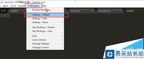 1、首先打開系統默認的配置內容,點擊菜單:“Preferences”->“Settings - Default”