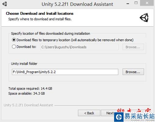 開始選擇下載與安裝路徑,下面的“Unityinstall folder”(Unity安裝文件夾)筆者建議選擇非系統(tǒng)盤的位置,進(jìn)行安裝,如下圖所示。