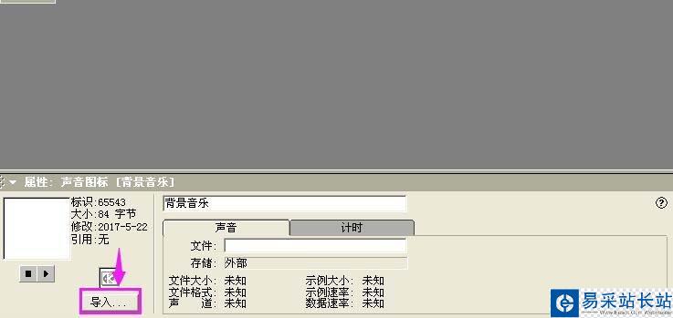 5、在聲音圖標屬性對話框中點導入按鈕;