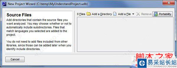 8、在向導的“源文件”頁面中,通過單擊添加目錄或添加文件將源文件添加到項目。
