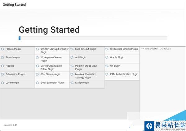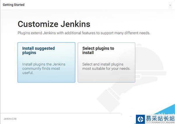 3、安裝后程序會自動創建了一個windows服務,Jenkins默認使用的端口是8080,在瀏覽器中輸入地址:http://localhost:8080/,可打開軟件安裝界面,如下圖所示: