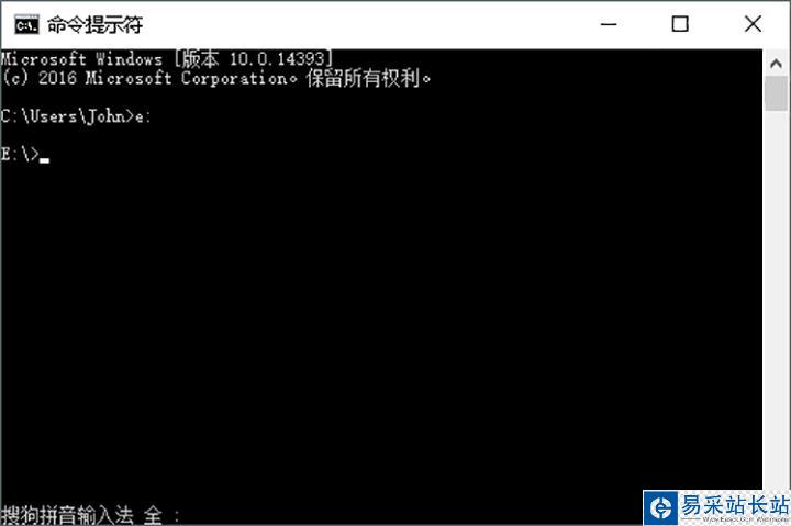2、在命令提示符窗口中首先進(jìn)入py命令所在的文件夾。本例中使用的py命令位于e盤根目錄下。dos命令中切換根目錄直接輸入驅(qū)動(dòng)器盤符即可。如圖所示:
