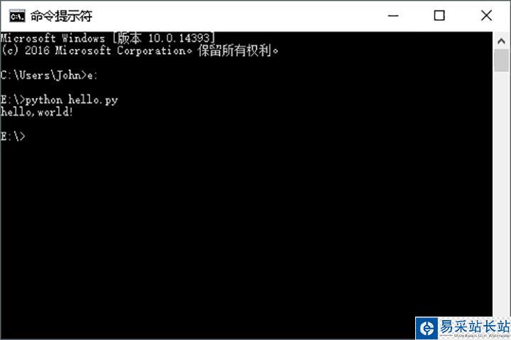 3、直接鍵入python xx.py后回車確認(rèn)。得到正確的運(yùn)行結(jié)果。本例是個(gè)最簡單的hello,world!的程序,運(yùn)行后在命令行窗口中顯示該串字符。如圖所示: