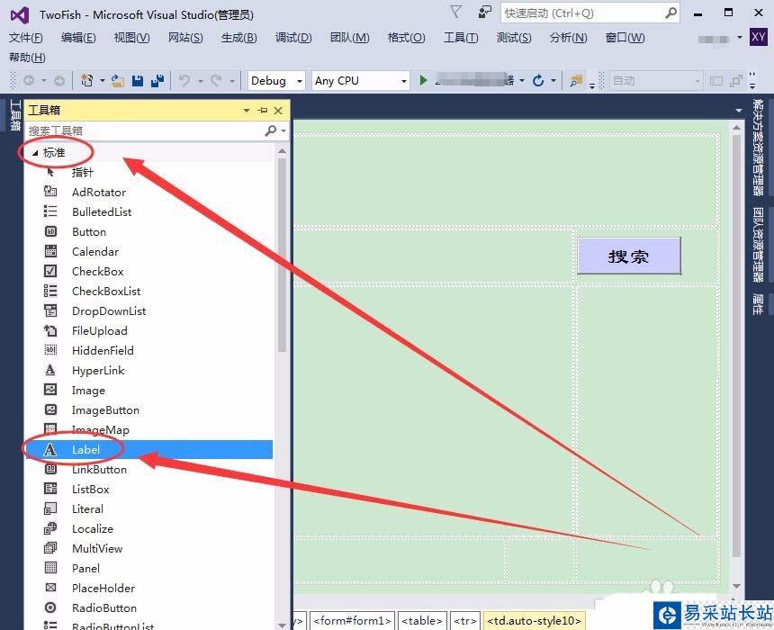 2、標(biāo)準(zhǔn)選項(xiàng)卡中,選擇Lable標(biāo)簽,將其插入網(wǎng)頁中。