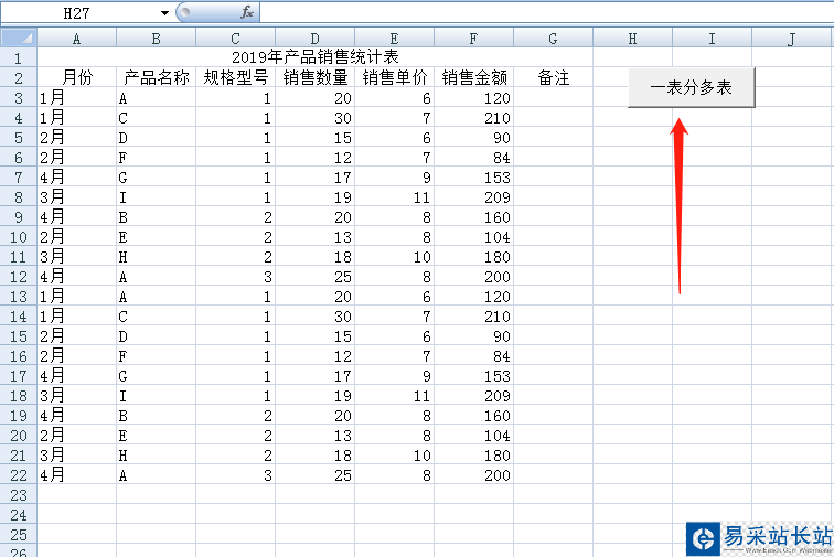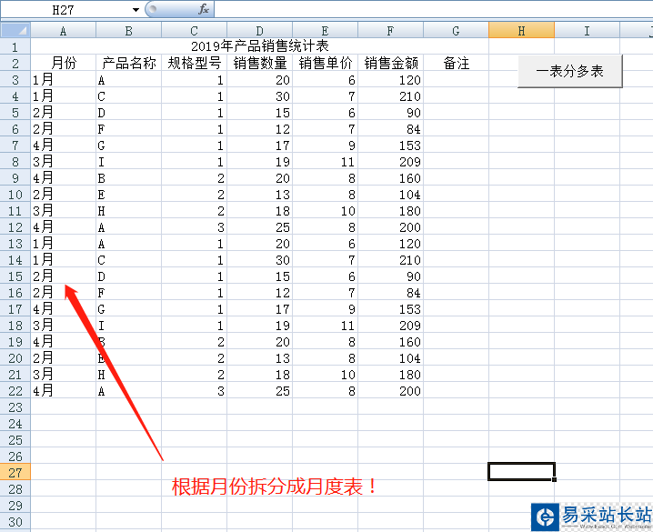 1、實(shí)例【編寫、運(yùn)行VBA代碼將“年度統(tǒng)計(jì)表”依據(jù)月份拆分成各月度表?】