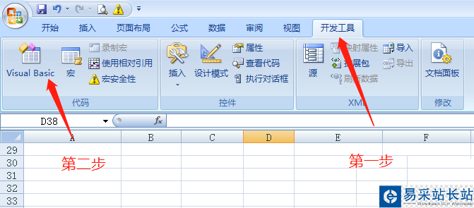 2、在工作表中,點(diǎn)擊菜單欄【開發(fā)工具】,在其工具欄內(nèi),點(diǎn)擊【visual basic】!